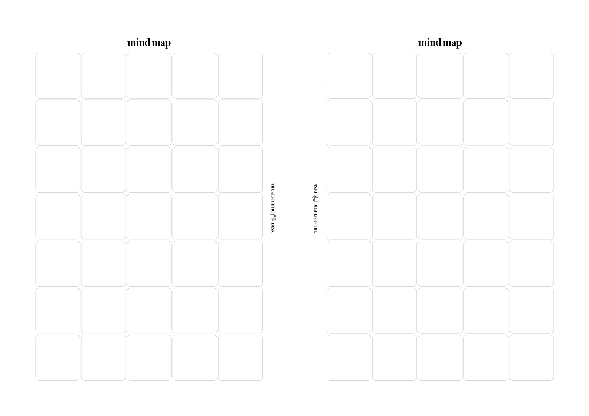 The beauty of mind maps is that they are customisable to suit your needs, so branch out your thoughts and connect your ideas in the manner you see fit. The squares help you keep your ideas concise, whilst providing structure to the madness.