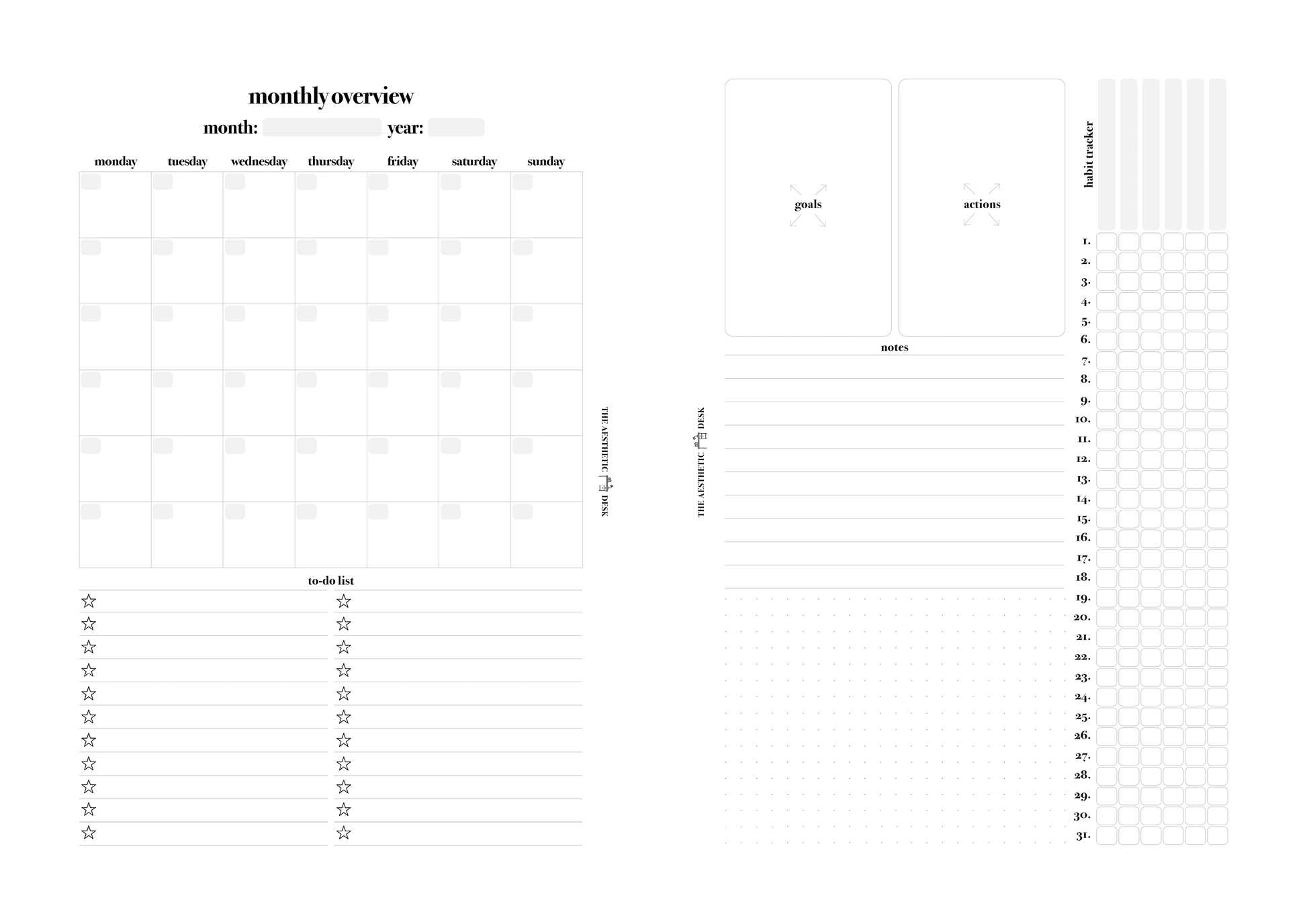 Track appointments, events and deadlines in the calendar, whilst keeping an eye on the never-ending list of tasks life keeps you busy with. Refine your goals for the month, jot down important notes, and check if those daily habits have indeed become daily.