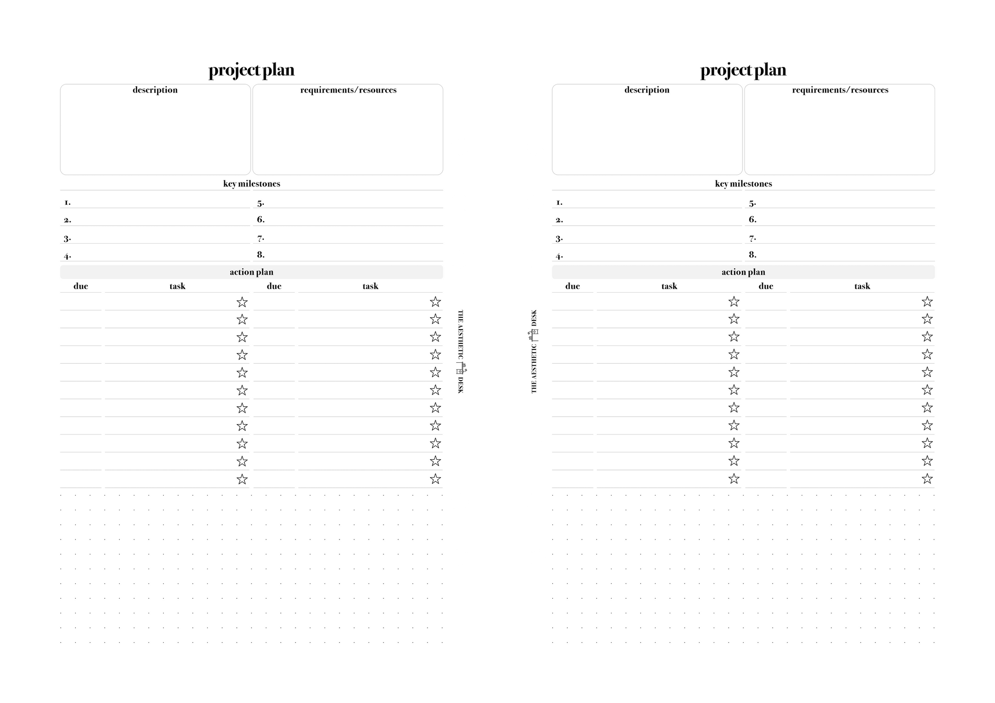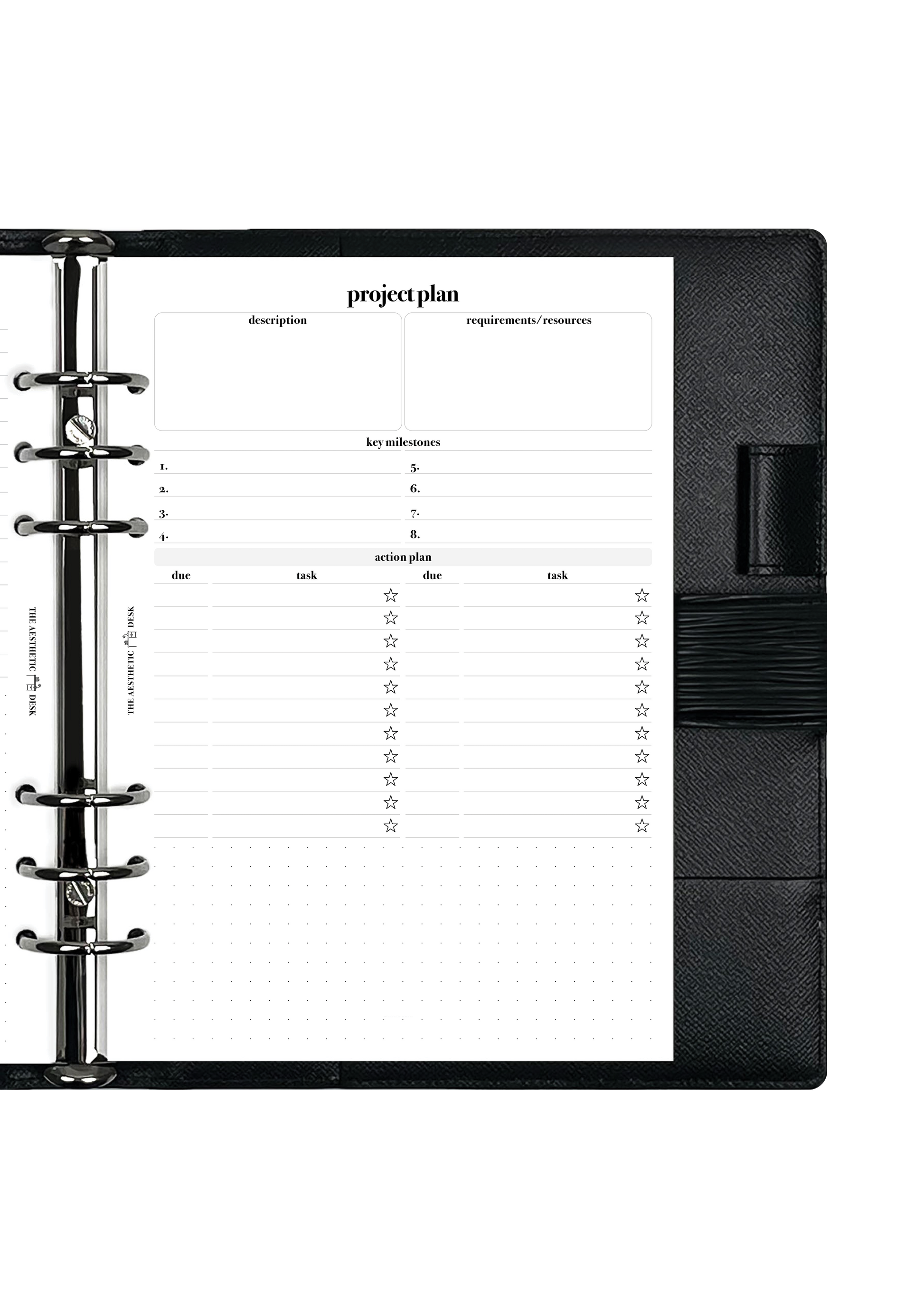 This insert provides a structured approach to planning your next project, allowing you to identify milestones, break down tasks and track your progress. With clear sections for timelines, resources and notes, you'll ensure nothing falls through the cracks. Ideal for personal and professional projects, as well as team collaborations.