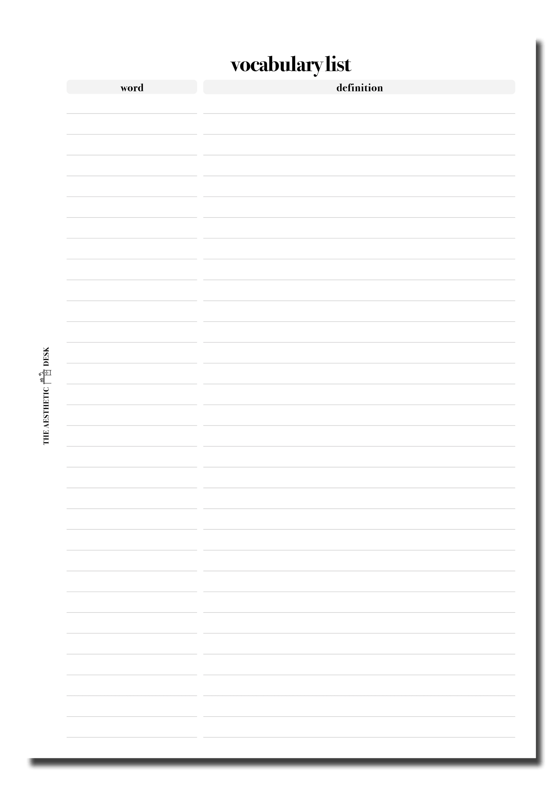 Perfect for students, language learners, or anyone looking to expand their lexicon. The Vocabulary List is ready to print and add to your planner…