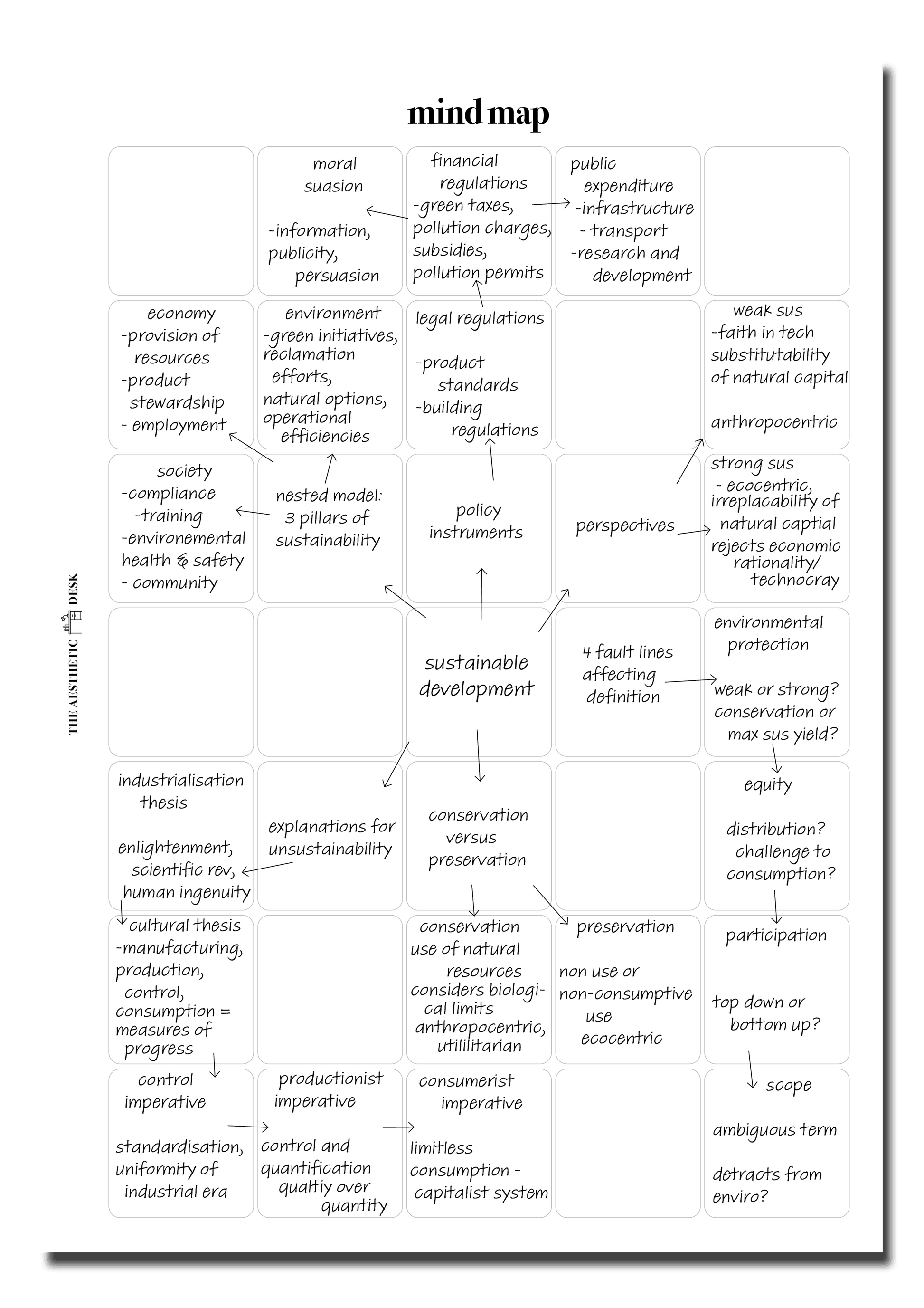 Pro tip: start by putting your main topic in the centre square, before branching out into more detailed concepts and notes. For chronological ideas or processes, start in the top left-hand square and zig zag your way down the page, creating a timeline or sequence.